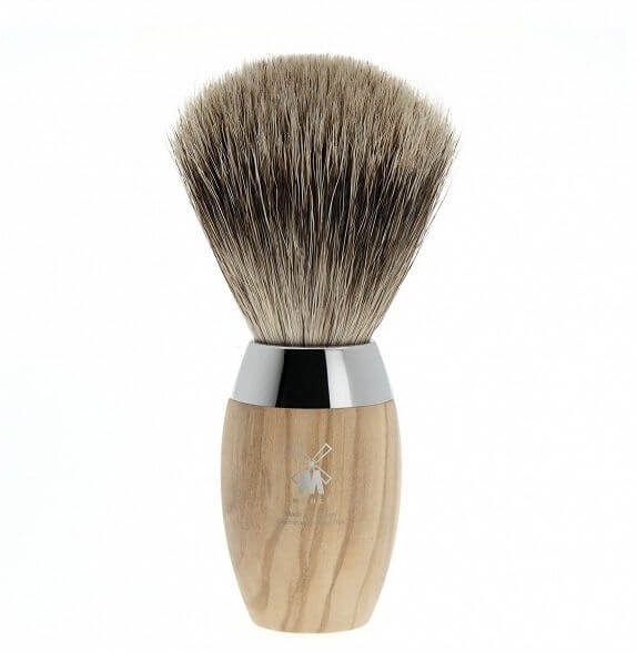 Štetka na holenie nemeckej značky Mühle sa vyznačuje krásnym designom a vysokou kvalitou použitých materiálov. Štetiny sú z jazveca v kvalite Fine Badger, ktoré sú o trochu pevnejšie než Silvertip. Rukoväť je z olivového dreva a vďaka tomu, že je lakovaná, tak má krásnu medovú farbu. Kovový doplnok je pochrómovaný.