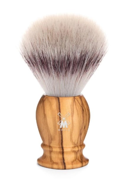 Štetec na holenie nemeckej značky MÜHLE je vyrobený so syntetických štetín a rukoväťou z olivového dreva.